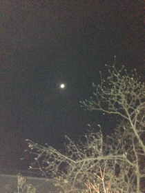 時々、まだ低い位置にある月が、やたらと大きくて、まん丸で、オレンジ色っぽい時がある。26日がまさにそうだった。